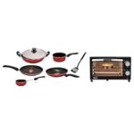 70.0% Off – Pigeon By Stovekraft Glass Oven Toaster Grill (12381) 9 Liters (Grey) & Cookware Set Of 7 Piece, Includes Tawa 23 cm, Fry Pan 24 cm, Kadai With Lid 24 cm, And Sauce Pan (Red)