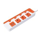 85.0% Off – BonKaso 3-Socket Power Strip with Dual USB – 3AC Sockets, 2 USB, 1.5m Cord Length, 1500 W, Compact 26cm Size, Ultra-Light 500g (White & Orange)